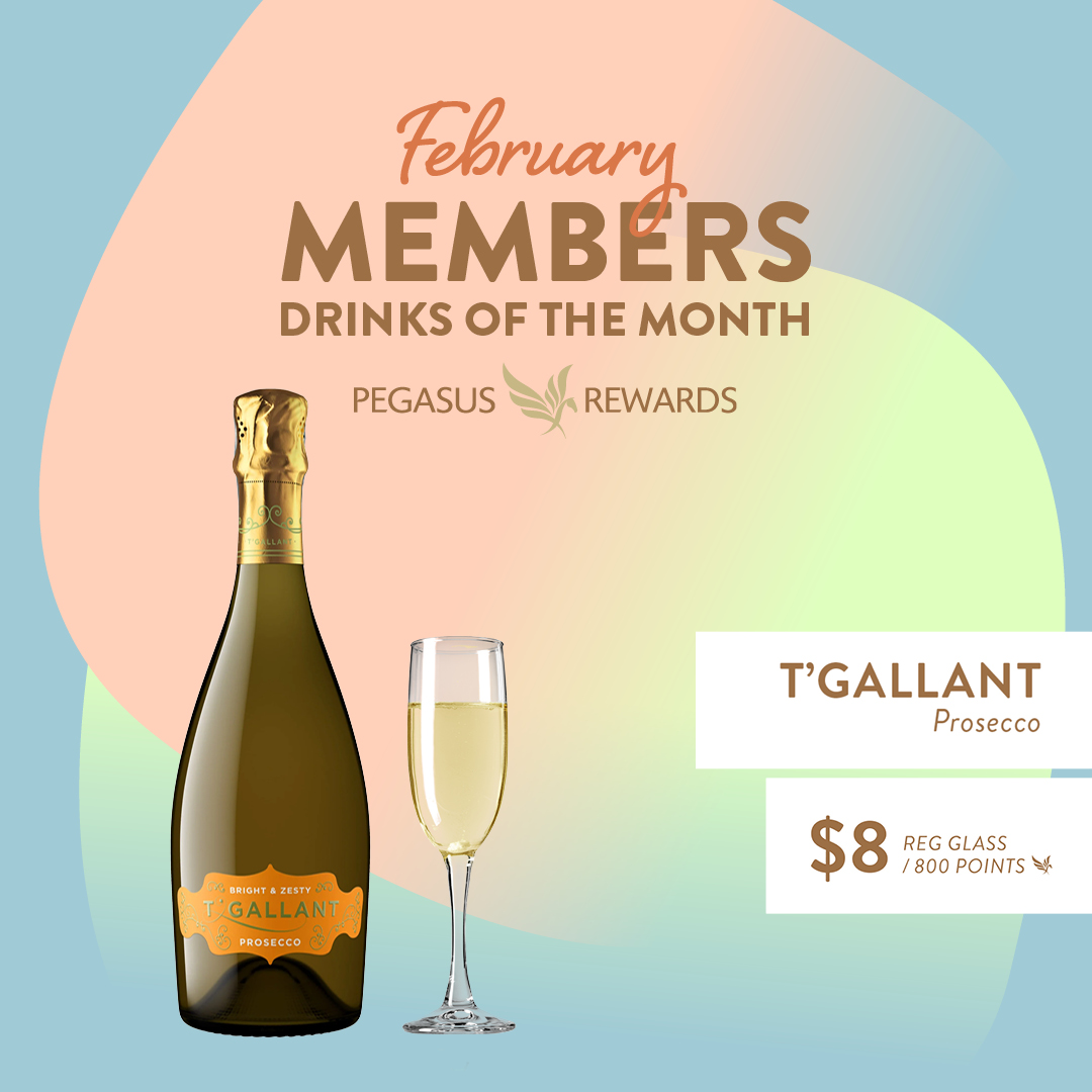 Being a Pegasus Rewards member has its perks. Enjoy our exclusive prices and point-redemption offers on some seriously good sips. Check out this month’s members only specials: